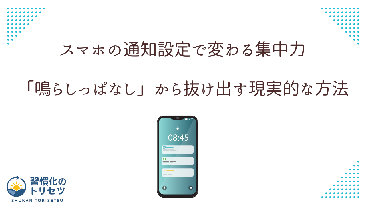 重要なのは、「一回あたりの時間」ではなく、「一日に何回、中断が入っているか」です。スマホの通知設定を整えることは、この中断の回数を減らし、集中力を守るための土台づくりと言えます。