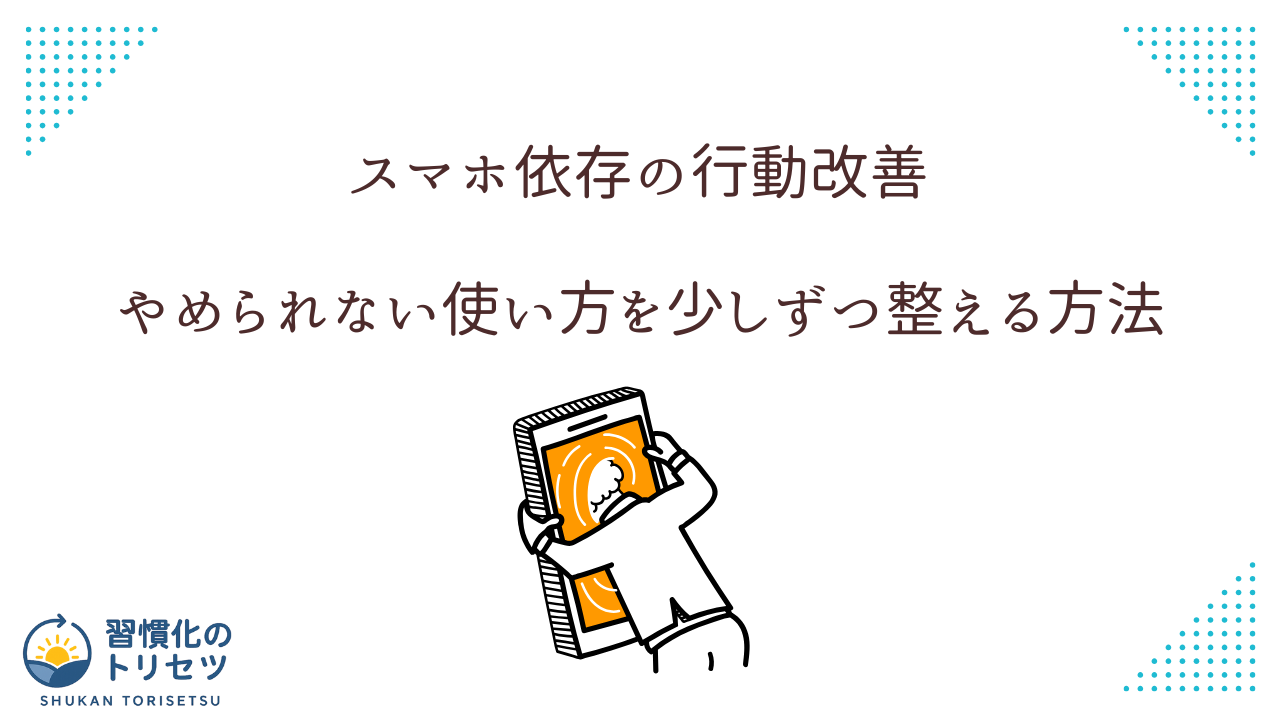 スマホ依存の行動改善は、「今日から一切見ない」といった極端な方法ではなく、生活レベルで無理なく続けられるルールや仕組みを整えていくことがポイントです。