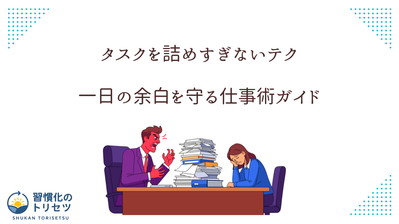 タスクを詰めすぎないテクは、自分を甘やかすためではなく、**長く健康に働き続けるための「仕事のインフラづくり」**です。明日の自分が少しラクになるように、今日の予定のどこかに、余白と優しさを足してあげてください。