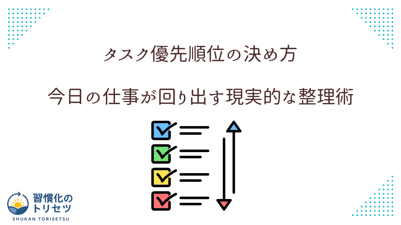 この記事を読み終えるころには、「タスク優先順位の決め方を、明日どのように自分の仕事に落とし込めばいいか」が具体的にイメージできるはずです。