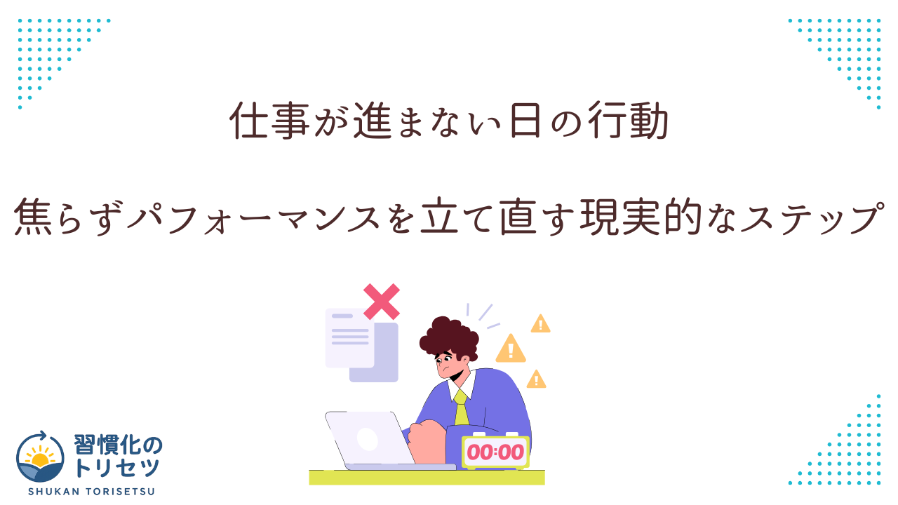 この記事を読み終えるころには、「自分の仕事が進まない日は、どこでつまずきやすいのか」「今日からどんな行動を一つ変えればよいか」が具体的にイメージできるはずです。