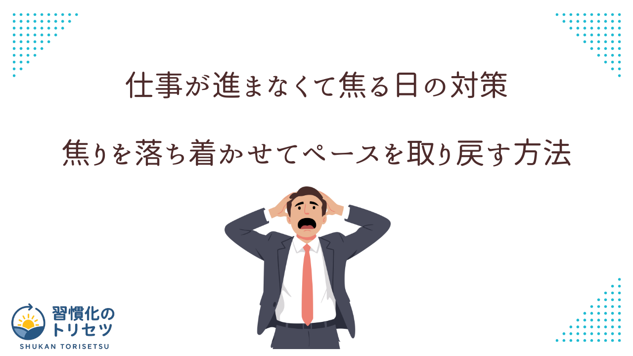 この記事では、仕事が進まなくて焦る日の対策として、次のようなポイントをお伝えしてきました。