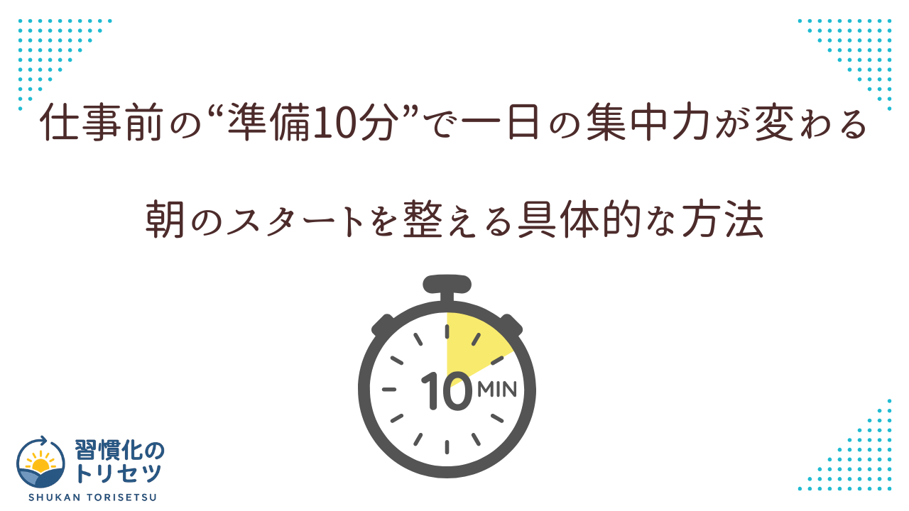 朝、デスクに座ったものの、しばらくメールやニュースを眺めているうちに、気づけば30分以上が過ぎていた……。そんな経験はありませんか。仕事前のわずかな時間をどう使うかで、その日一日の集中力や生産性が大きく変わります。本記事では、「仕事前の“準備10分”」をどう設計し、どう続けるかを、心理学や仕事術の知見をもとに具体的に解説します。