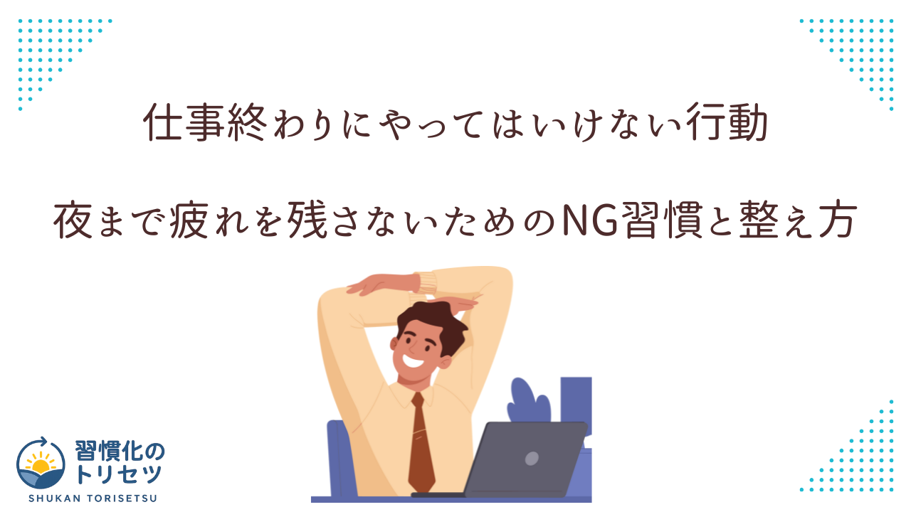 この記事では、仕事終わりにやってはいけない行動と、その理由、そして代わりに取り入れたい具体的な習慣を、一般レベルの生活改善の視点から丁寧に解説します。
