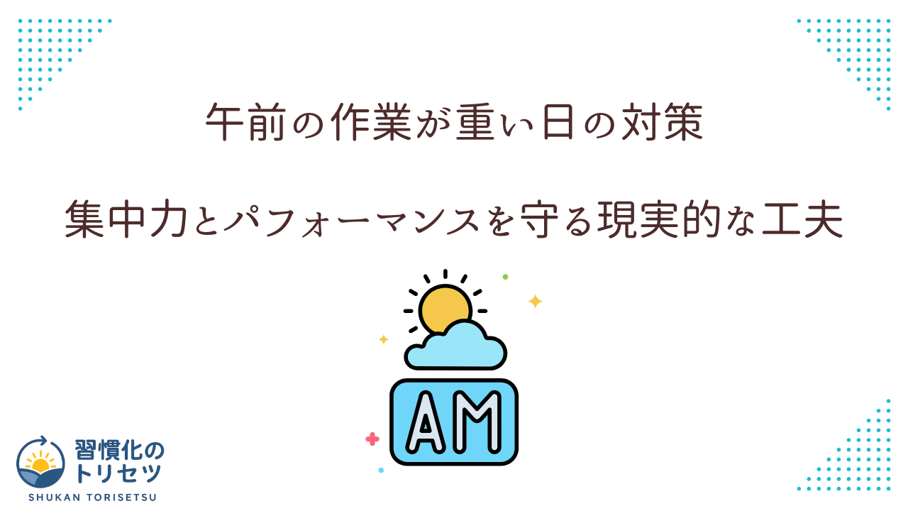 この記事を読み終えるころには、「午前の作業が重い日」にどのような準備をしておけばよいか、当日の朝にどんな工夫をすればよいか、自分の生活スタイルに合わせた現実的な対策がイメージできるはずです。