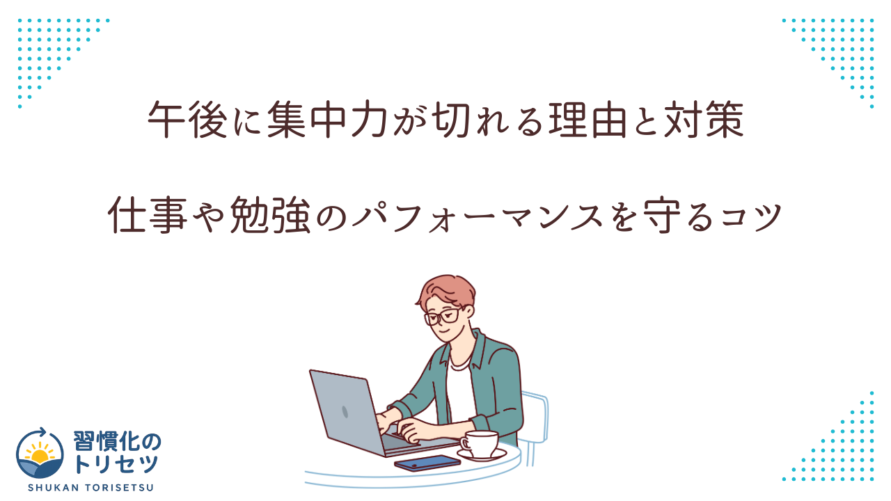 この3つを押さえながら、「なぜ自分は午後に集中力が切れやすいのか」「明日から何を変えればよいのか」を一緒に整理していきましょう。
