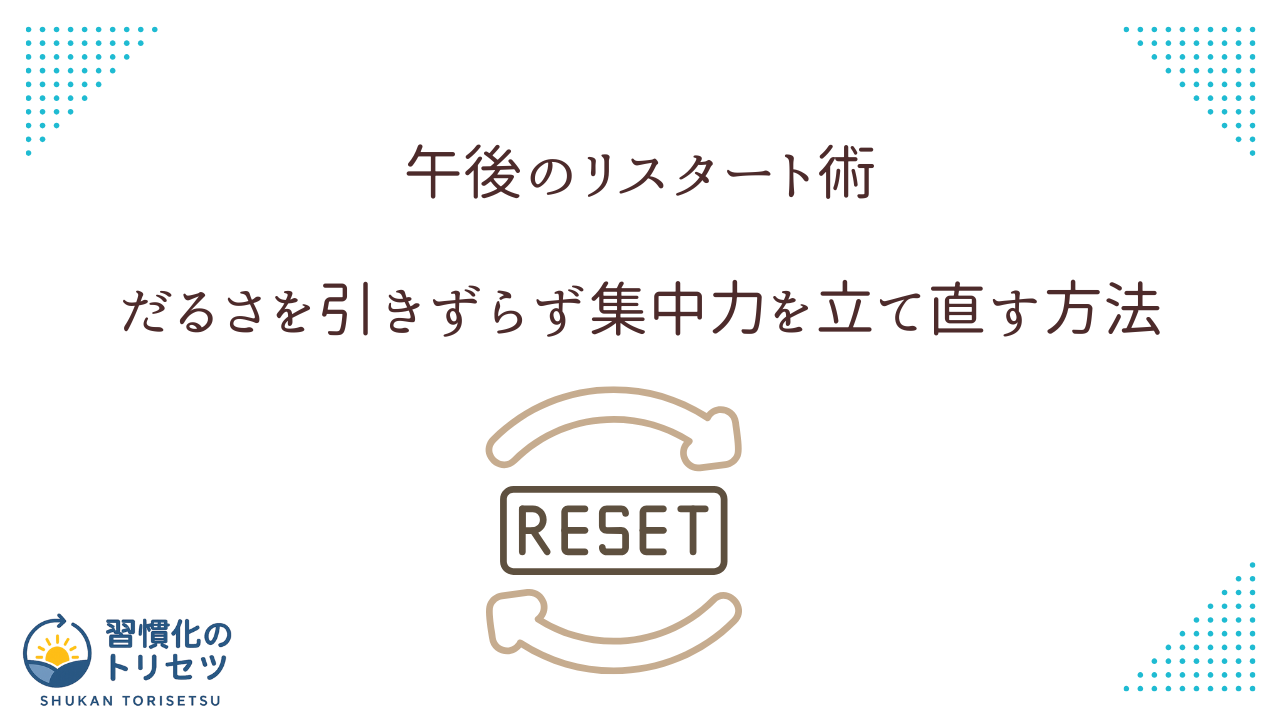 この記事を読み終えるころには、「自分に合う午後のリスタート術はどれか」「明日から午後のどのタイミングを変えればよいか」が具体的にイメージできるようになるはずです。
