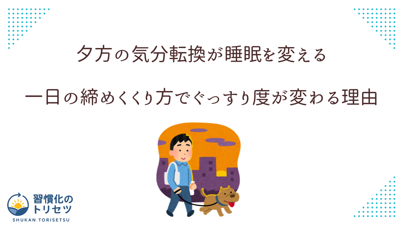 この記事を読み終えるころには、「なぜ夕方の気分転換が睡眠に効きやすいのか」「自分の生活スタイルに合う気分転換は何か」が整理され、今夜から試したくなる具体的なイメージが持てるはずです。