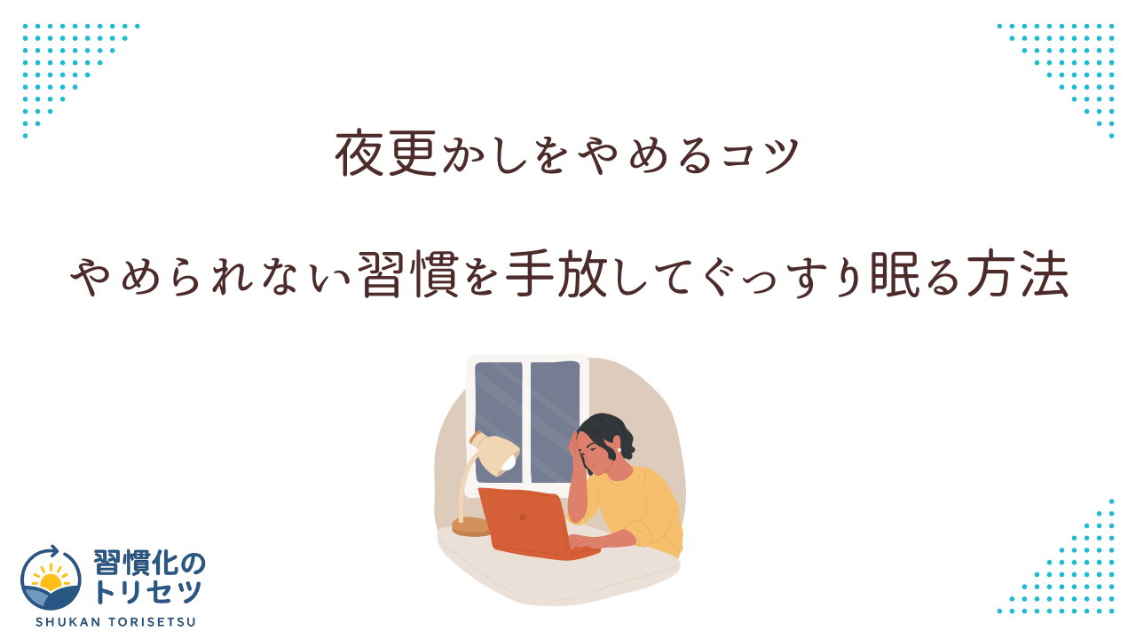こうした行動パターンは、一度クセになると自動的に繰り返されます。夜更かしをやめるコツは、この「無意識なパターン」に光を当てて、意識して区切りを作ることだと言えます。