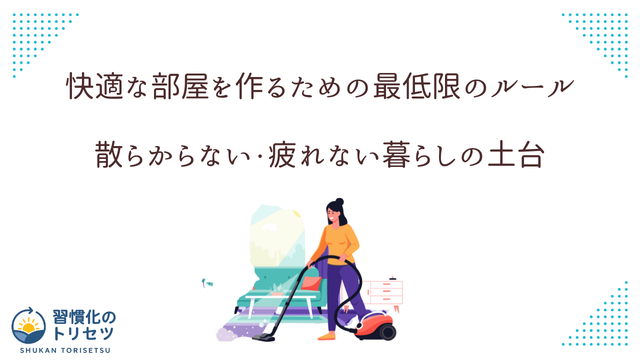 結論を先にまとめると、快適な部屋を作るための最低限のルールは次の3本柱です。