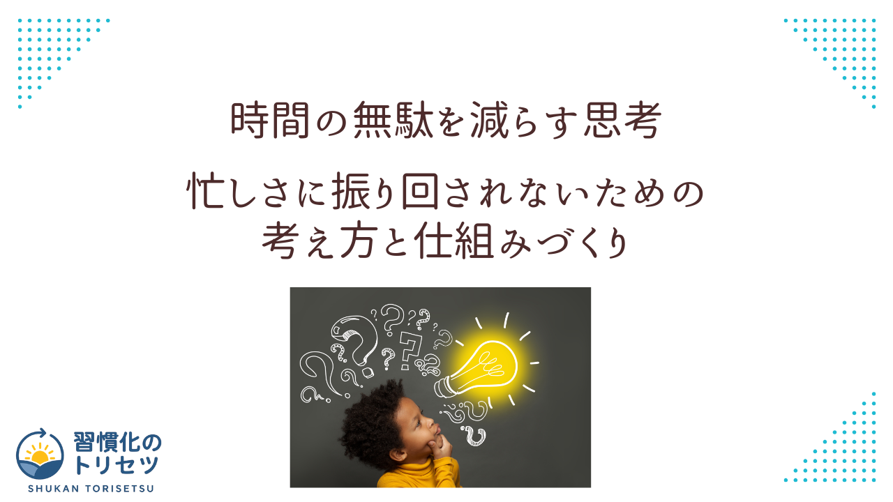 けれど、時間の無駄は「根性不足」ではなく、たいてい思考のクセと環境の設計ミスから生まれます。つまり、考え方と仕組みを変えれば、体力や気合いに頼らずに時間の余白を作ることができます。