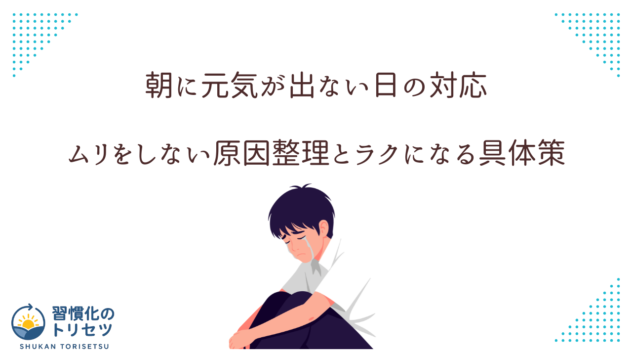 この記事では「朝に元気が出ない日の対応」をテーマに、原因の整理から、今朝すぐできる対処法、前日までにできる準備、メンタル面のケア、専門機関への相談目安まで、順番に解説します。
