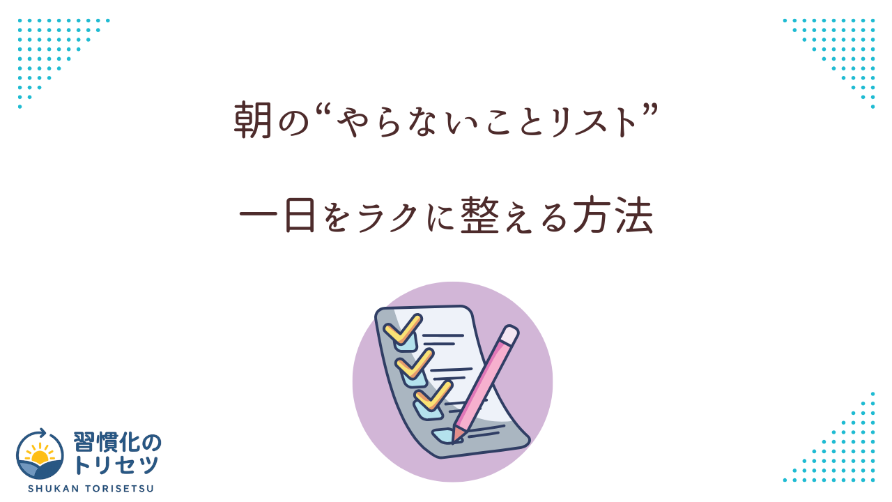 そんなときに役立つのが、あえて「やること」を増やすのではなく、「やらないこと」を決めてしまう朝の“やらないことリスト”です。朝の失敗パターンをあらかじめ把握し、「これはやらない」とルール化しておくことで、余計な迷いや浪費時間を減らし、限られたエネルギーを本当に大事なことに回しやすくなります。