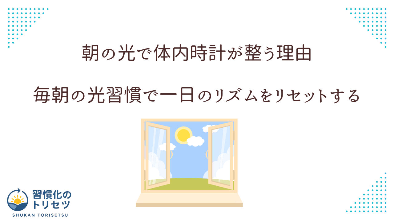 まずは、「体内時計とは何か」「なぜ朝の光で整うのか」という基本から確認していきます。ここがわかると、具体的な行動も納得感を持って続けやすくなります。