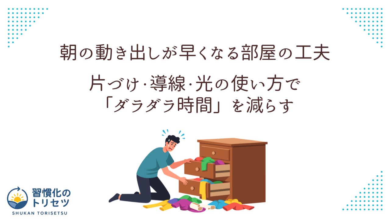 この記事では、**「朝の動き出しが早くなる部屋の工夫」**をテーマに、原因の整理から、具体的なレイアウト、収納、光や温度の整え方まで、行動レベルで分かりやすく解説します。