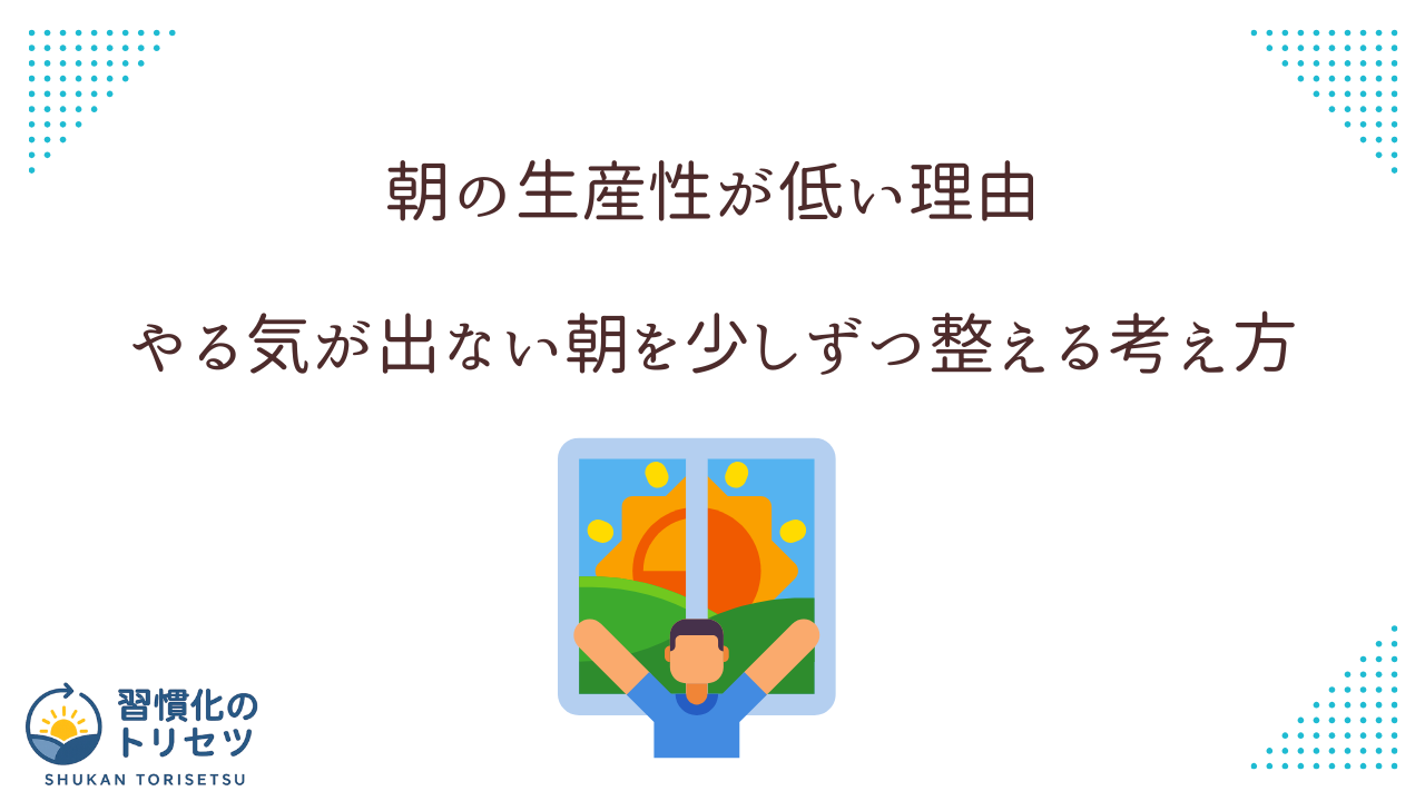 この記事を読み終えるころには、「自分の朝の生産性が低い理由はどこにありそうか」「明日の朝から何を一つ変えてみるか」が、具体的にイメージしやすくなるはずです。