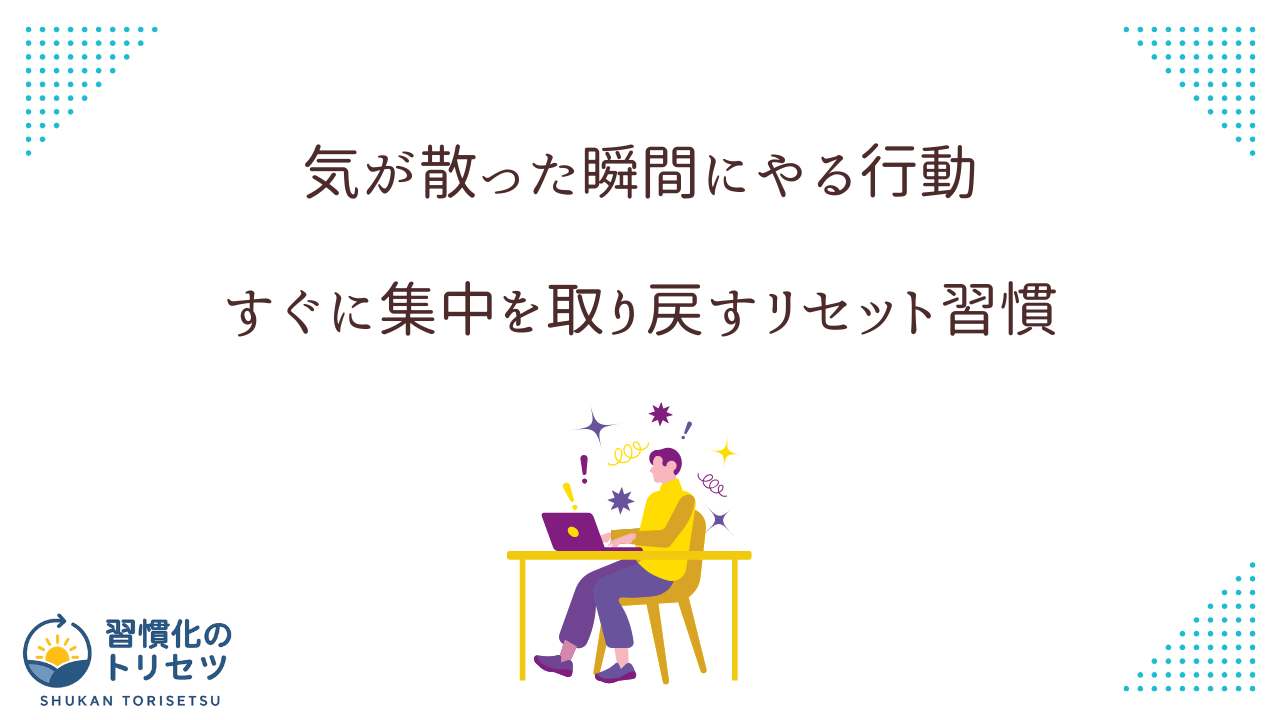 この記事を読み終えるころには、「気が散った瞬間にやる行動」を自分なりにカスタマイズし、今日からすぐ実践できる具体的なイメージが持てるはずです。