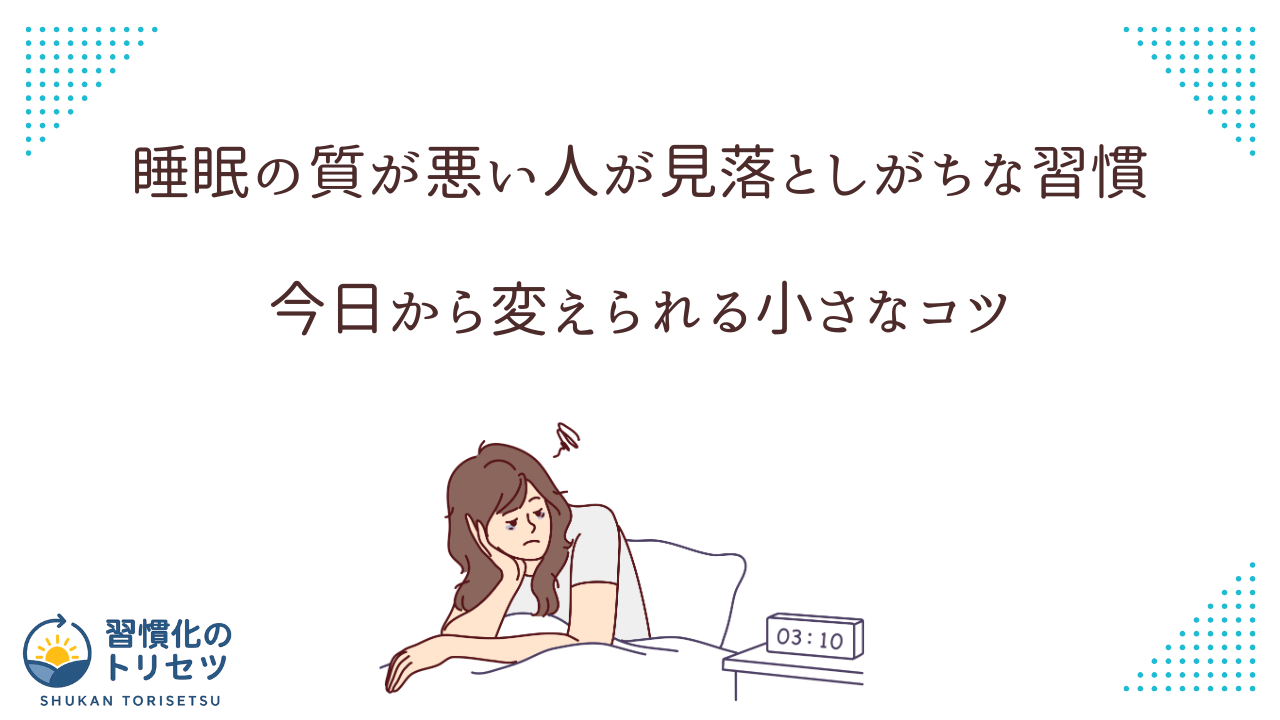 多くの人は、睡眠に関する情報をいろいろ調べて「早く寝るべき」「スマホはよくない」といった大きなポイントには気づいています。一方で、**睡眠の質が悪い人ほど、自分では当たり前になっていて気づきにくい「見落としがちな習慣」**がいくつも重なっていることがあります。