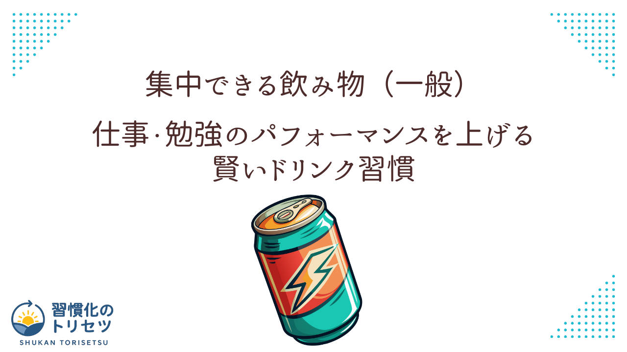 忙しい日ほど、コンビニで何となく手に取った缶コーヒーやエナジードリンクを飲んで、そのまま作業に戻ることは多いと思います。しかし、集中力の観点から見ると、「今の自分は、何を補うと集中しやすくなるか」を一度だけでも立ち止まって考えてみることが重要です。
