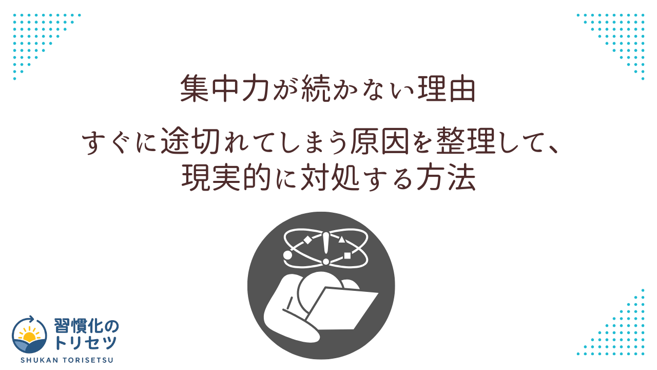 この記事を読み終えるころには、「自分の集中力が続かない理由はどこにありそうか」「今日から何を一つ変えればよいか」が、具体的にイメージできるはずです。