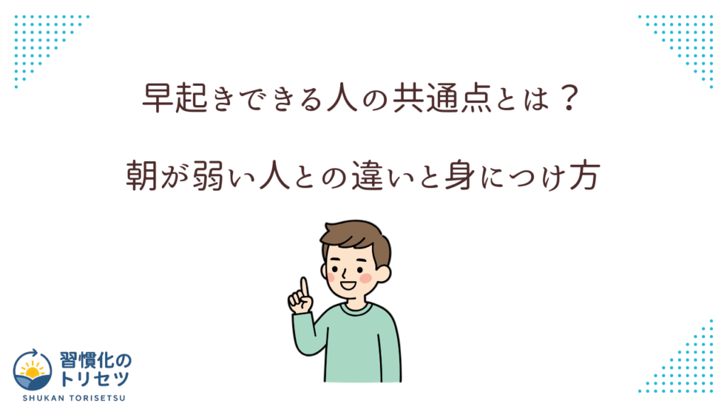 「早起きできる人って、何がそんなに違うんだろう」「自分には朝型は向いていないのかもしれない」そう感じていませんか。仕事や勉強、家事育児など、やることが多い人ほど「朝時間をうまく使いたい」と思いつつ、実際には二度寝をくり返して自己嫌悪…とい... -